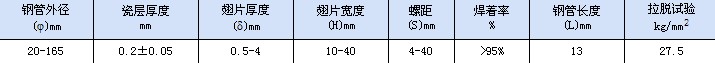 我公司設(shè)計(jì)生產(chǎn)的搪瓷螺旋翅片管的規(guī)格型號(hào)見下表。